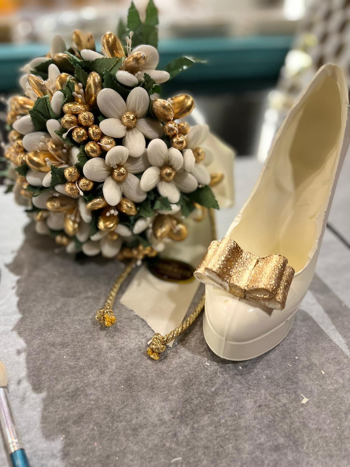 Precioso ramo de novia elaborado a mano, grajeado de chocolate con leche